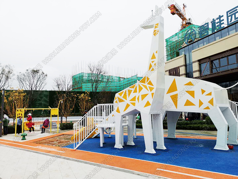 碧桂园天宸房地产项目是一个生活小区的休闲娱乐项目,该项目具有很好的主题性,采用以长颈鹿为主题,生动形象,具有很高的趣味性,观赏性,深受小朋友们的喜爱,项目中增加了乐鱼leyu.com游乐生产设计的秋千组合,为生活区的人们提供了很好的休闲场地和设施。