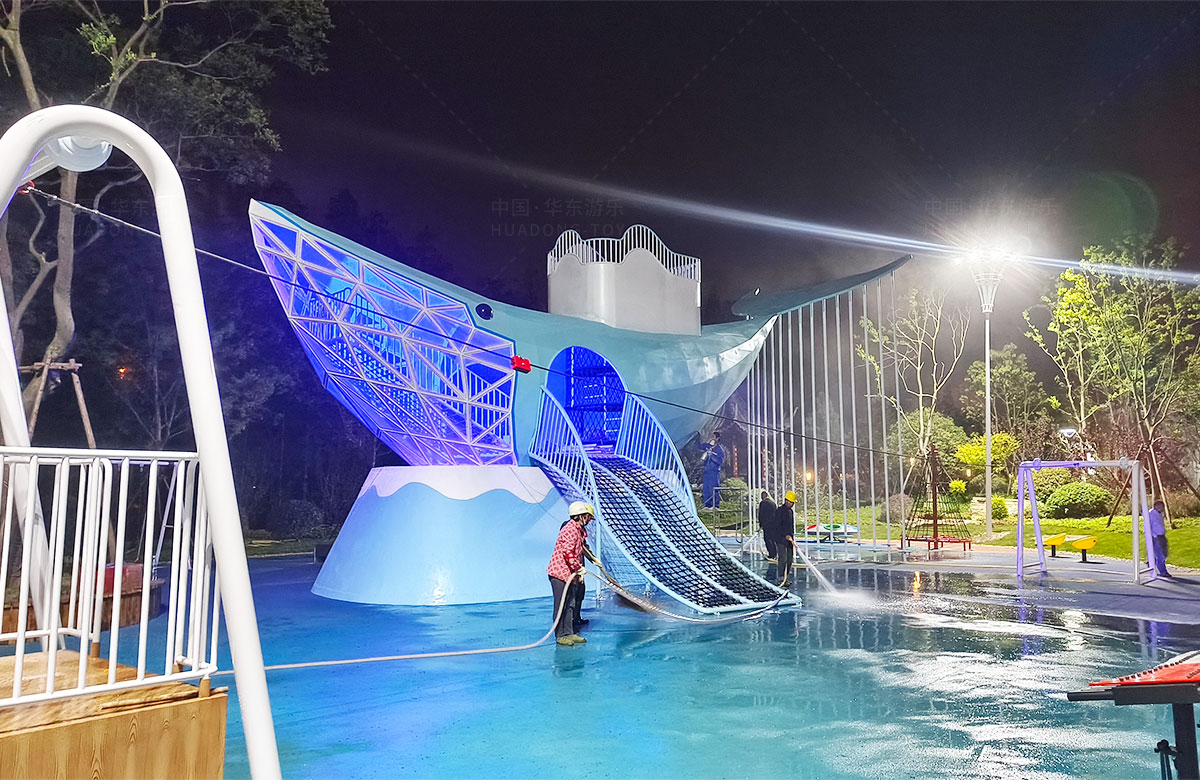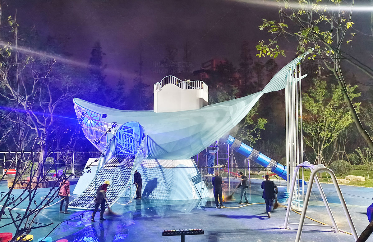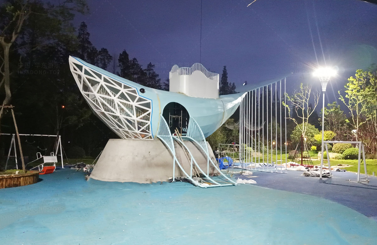 • 该项目选用的是乐鱼leyu.com游乐自主研发和生产的鲸鱼主题系列的非标定制游乐设备,设计了具有攀爬网、钻洞、空中滑索、打击乐器、旋转椅等功能设备,卡通的造型,完善的功能深受小朋友们的喜爱。