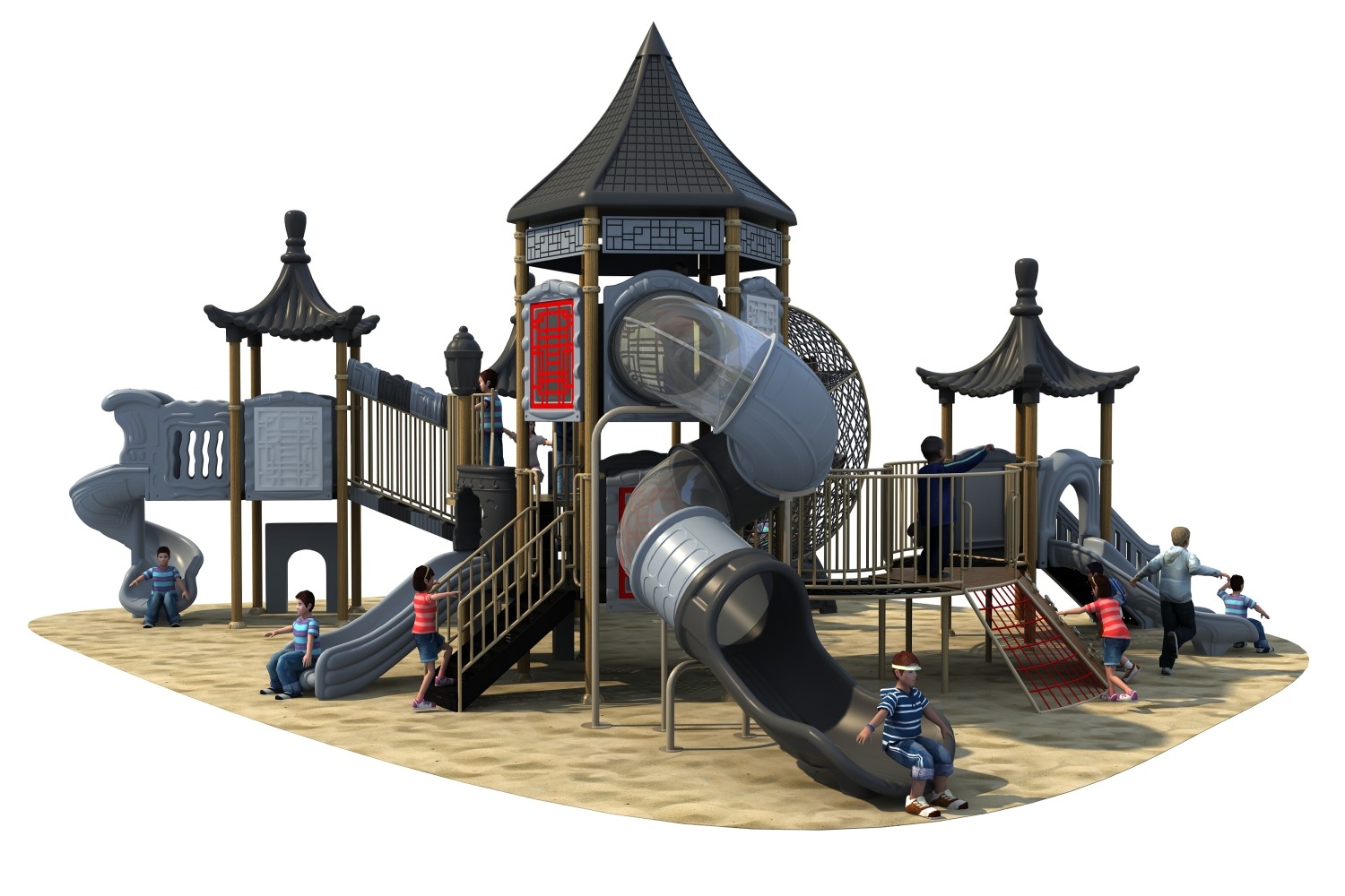 • 中国风系列是一种具有中国风建筑特色的大型滑梯组合,以苏州园林与徽派建筑为灵感,将凉亭、房屋、大红灯笼融入现代游乐设备,体现建筑美学的简洁、复古、大方,为孩子打造一个奇妙的游乐世界,积极培养孩子对中国传统文化的热爱,弘扬中国传统与亲身体验。