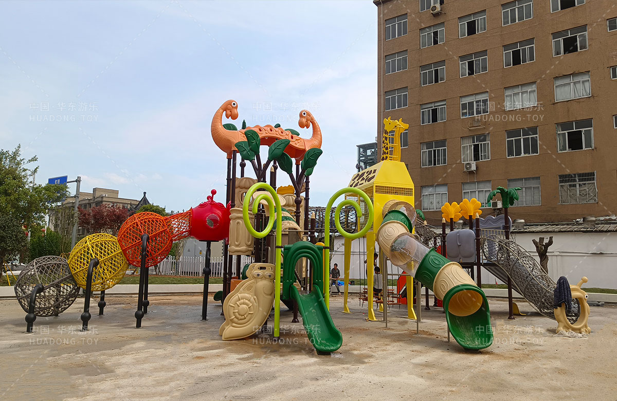 乐清市溪西工业园区休闲文化生态园是一个免费的文旅公园,主要为生活在这里的人群提供一个休闲、娱乐、遛娃、健身的场所,在该项目中选用的的乐鱼leyu.com有了自主研发和生产的动物系列组合滑梯,该滑梯具有功能齐全、玩法多样、颜色艳丽等特点,除此之外还新增了儿童 摇摇乐、组合秋千、跷跷板、打击乐器、脚踏旋转座椅等游乐设备。