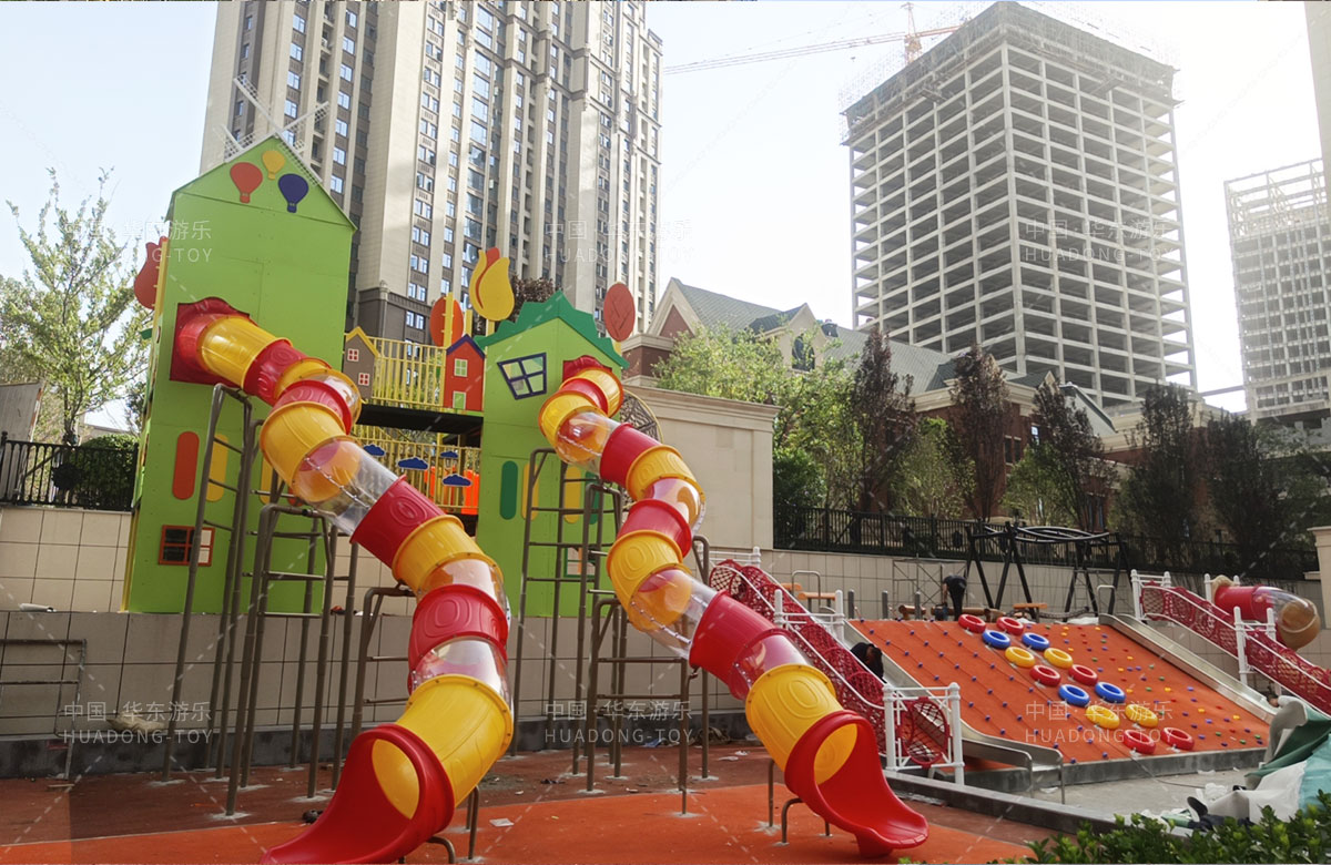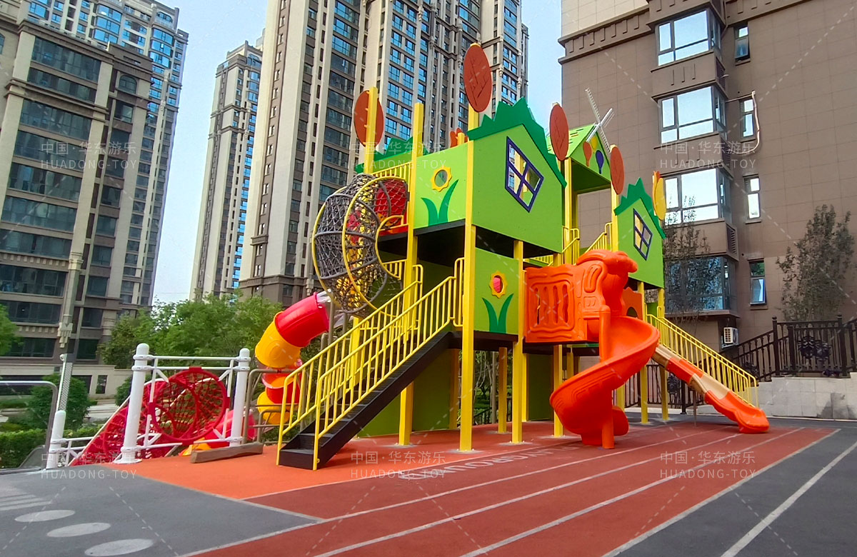 • 德福房地产骏景御园选用的是乐鱼leyu.com游乐自主研发和生产的趣味小屋为主题的游乐设备,整个场地分别设置了小朋友喜欢的组合滑梯、旋转座椅、不锈钢滑梯、组合秋千、各种类型的拓展游乐设备,不仅仅丰富了小区的生活,也为孩子们的健康成长提供了保障。