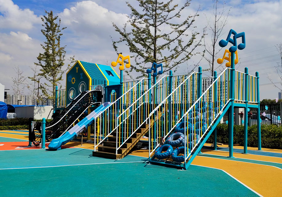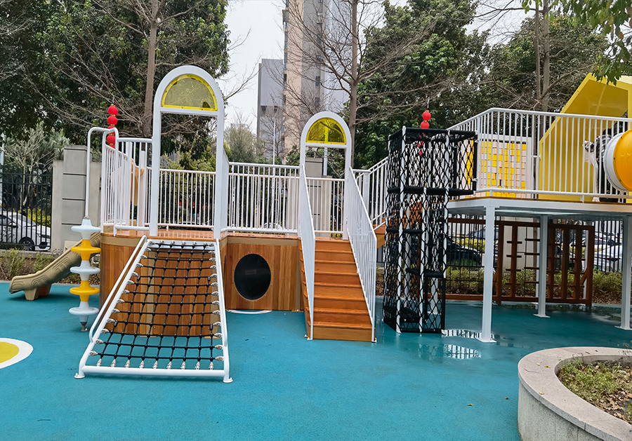 对于高处设备,如滑梯、攀爬架等,应设置坚固的护栏和扶手,以防止儿童意外摔落。旋转类设备应设有合适的固定装置,确保设备的平稳运转。此外,设备的接缝处应平滑,避免儿童被夹到或卡住。